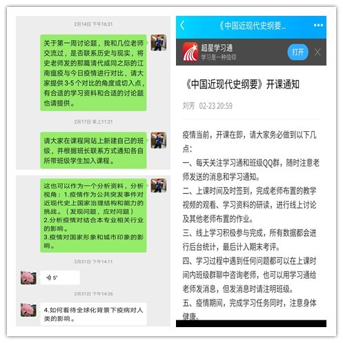 《中国近现代史纲要》根据现实情况和思政课特点,确定开学的特殊一课是“战疫情”。假期当中,教研室所有人员进行线上教研讨论,明确“战疫情”主题内容、确定讨论视角,编写学习资料,制作课件,选择视频,上传教学平台。开学后利用课程平台、超星学习通和QQ群开展学习。要求学生观看视频《冠状病毒的自白》,了解病毒的相关知识。观看视频《元宵节特别节目》、《把我的外公和妈妈都借给你》,体会众志成城,共克时艰。浏览学习资料——晚清时期的两次瘟疫,毛泽东指挥送瘟神等,梳理中国近代发生过的疫情,分析其作为公共突发事件对国家治理结构和能力的挑战。通过学习讨论和完成“战疫情”调研作业,学生了解了在抗击疫情过程中所表现的“中国力量”、“中国制度”、“中国速度”,涌现的“中国脊梁”,体现的“中国精神”,更加坚定了“四个自信”。