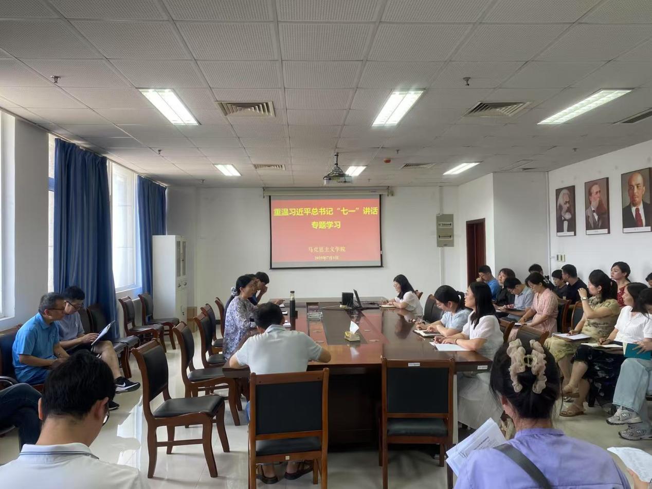 今年是中国共产党成立104周年,7月1日,学院组织开展了重温习近平总书记“七一”讲话专题党日活动,全面深化党员政治教育与党性修养提升。此次学习活动由学院党委书记周慧主持,全院党员教师参加。