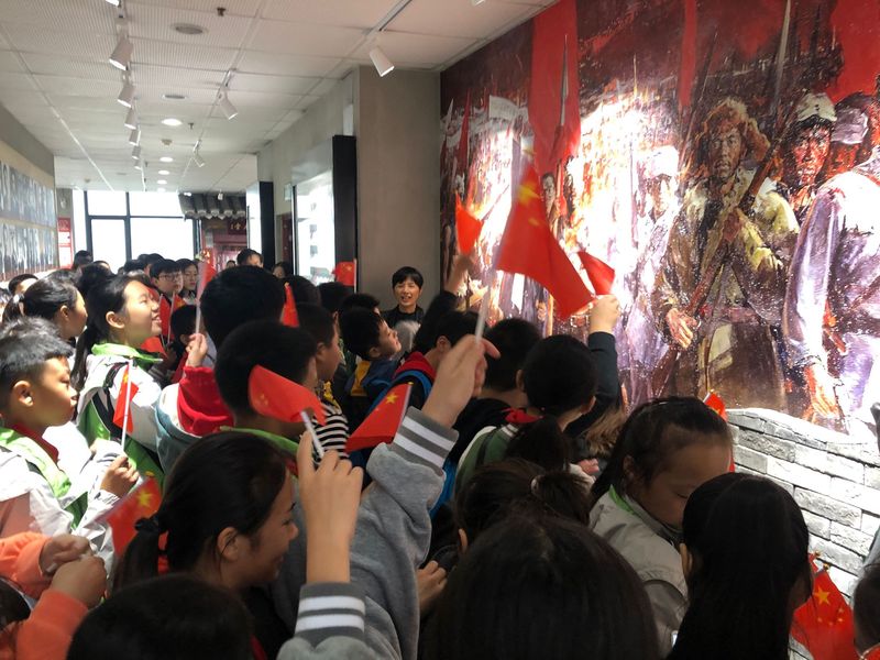 小学生在馆内齐唱《义勇军进行曲》