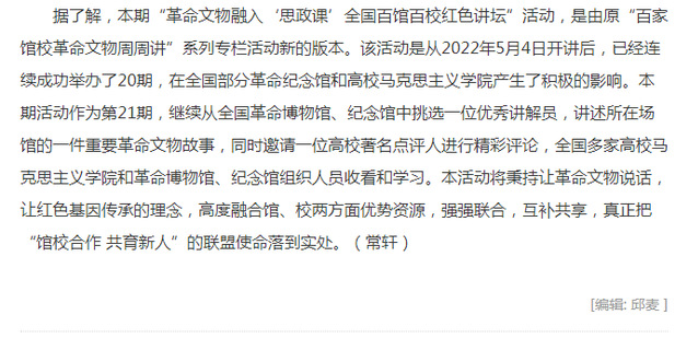 ”革命文物融入‘思政课’全国百馆百校红色讲坛”2023年第一期顺利开讲