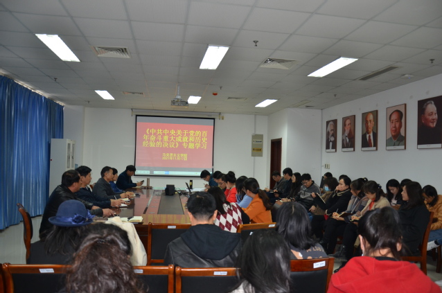 2021年11月17日下午,我院在会议室召开专题学习会议,深入学习贯彻党的十九届六中全会精神,重点学习研讨《中共中央关于党的百年奋斗重大成就和历史经验的决议》《关于〈中共中央关于党的百年奋斗重大成就和历史经验的决议〉的说明》。会议由党总支书记钟秀芹主持,学院全体教师参加会议。