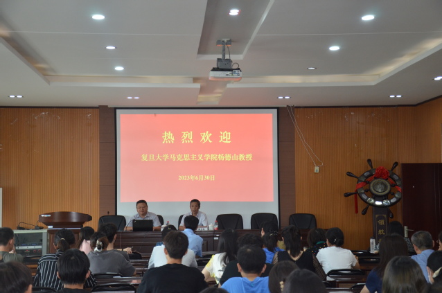 6月30日下午,复旦大学7790必发集团博导杨德山教授应邀来院作题为《中国式现代化的百年探索和实践经验》报告。周卫东院长主持,我院领导班子、全体教师和部分学生听取了报告。