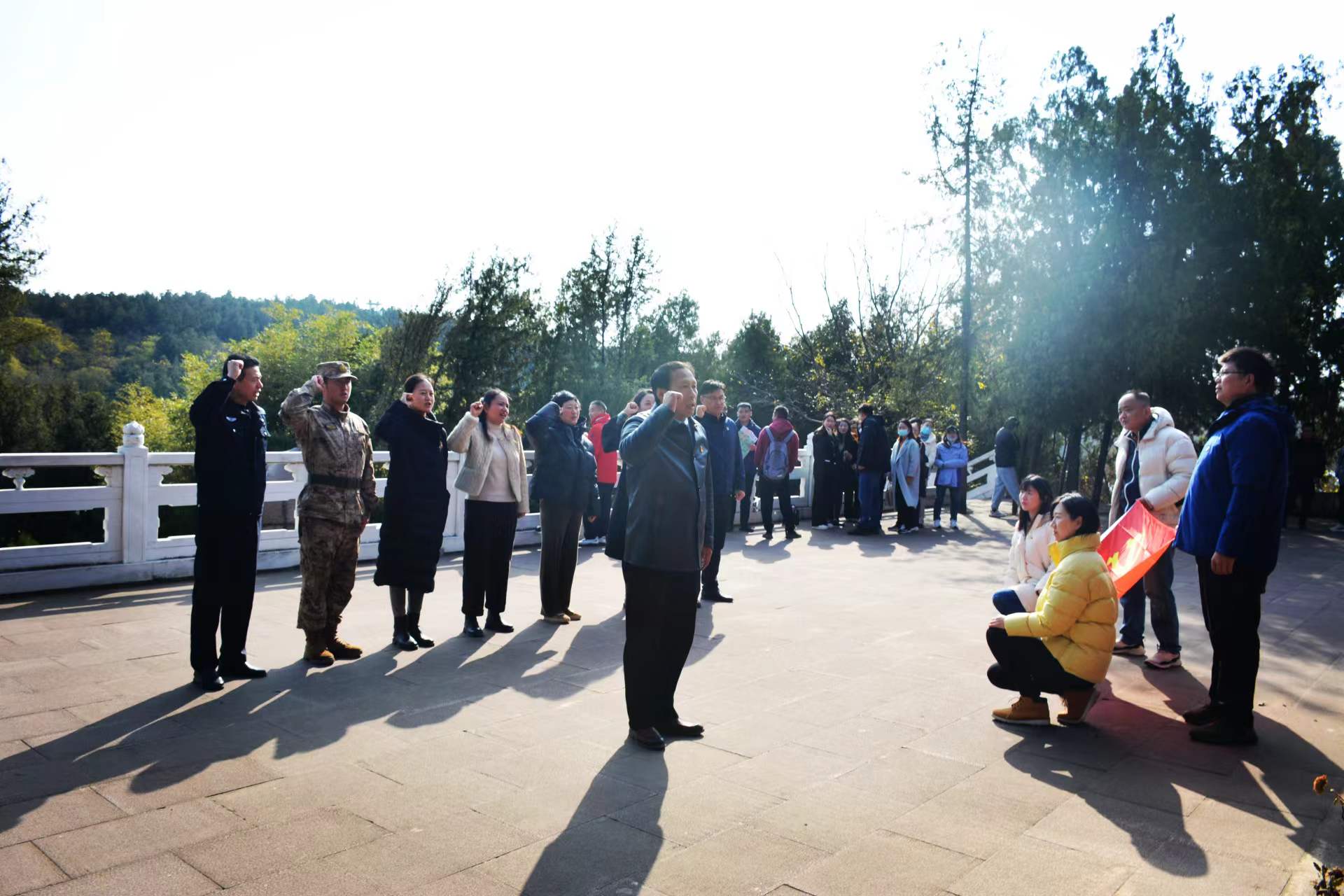 当日上午,7790必发集团《习近平新时代中国特色社会主义思想概论》课程教研室教师首先进行现场教学。在新沂市公安局党性锤炼中心接受党性教育;在马陵山红色教育基地宿北大战纪念碑前开展军警民共建活动,重温入党誓词,昭示道路自信。