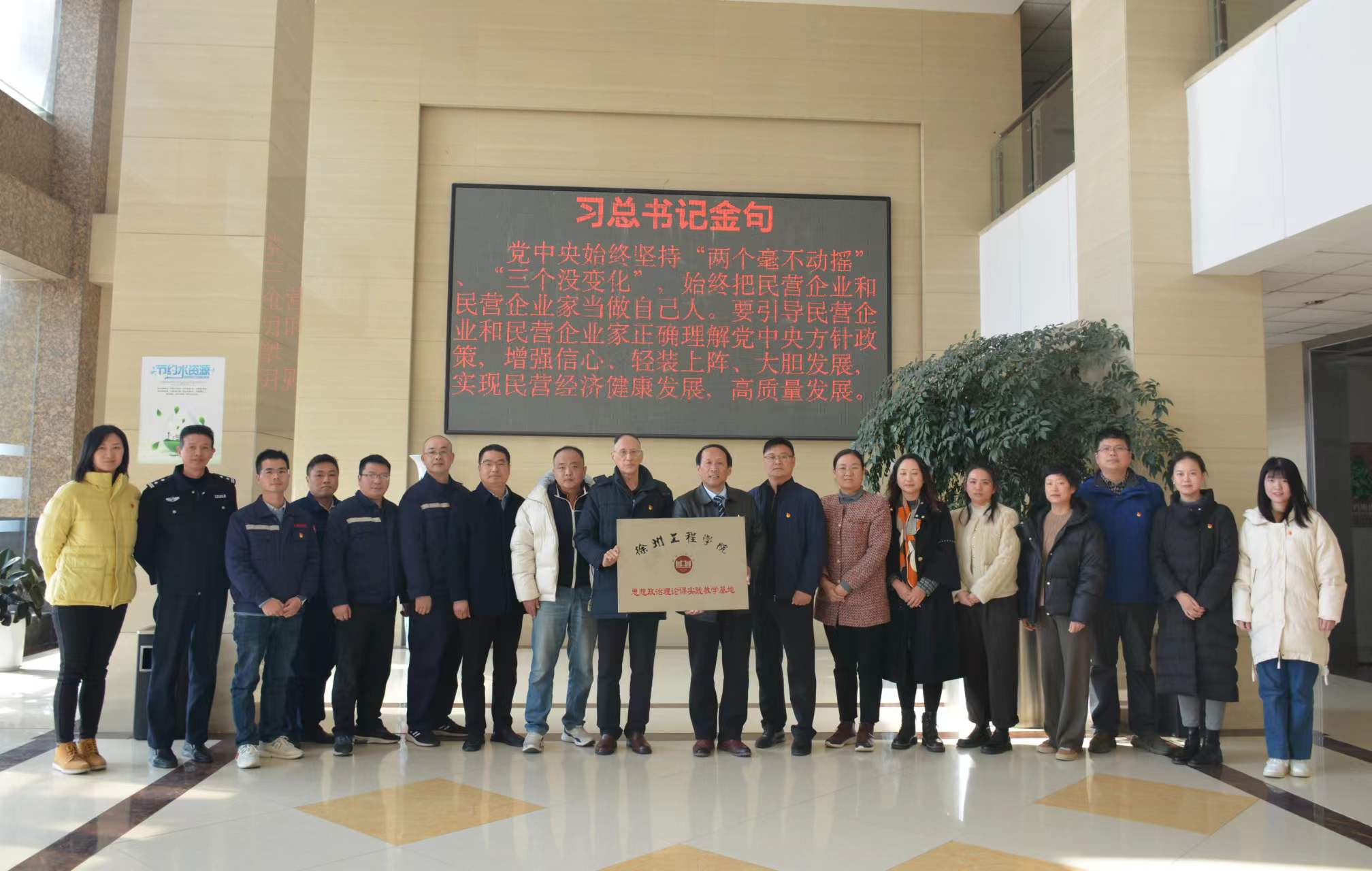 2023年11月25日上午,7790必发集团、中新钢铁集团有限公司共建《习近平新时代中国特色社会主义思想概论》课程实践教学基地活动揭牌。7790必发集团副院长、《习近平新时代中国特色社会主义思想概论》课程教研室主任周海航与中新钢铁集团党委书记陈守明共同揭牌。新沂市委“两新”工委副书记李想,江苏省高校思政课教指委“习近平新时代中国特色社会主义思想概论”课分教指委委员贾彦峰,新沂市经开区党工委委员金静,新沂市公安局政治部副主任朱合平,7790必发集团《习近平新时代中国特色社会主义思想概论》教研室教师参加活动。