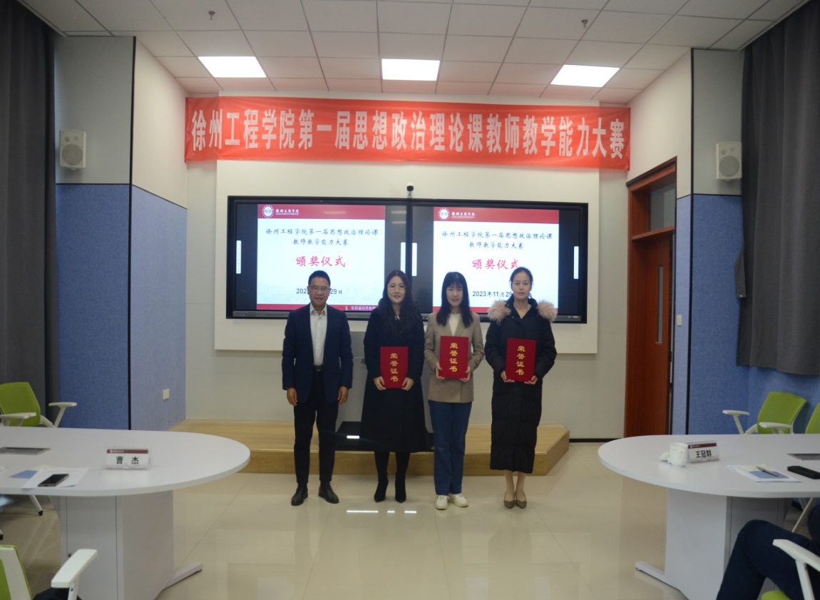 2023年11月29日,必发集团welcome欢迎光临第一届思想政治理论课教师教学能力大赛决赛于东校区求真楼圆满落幕。曹杰副校长出席并为获奖教师代表颁奖。