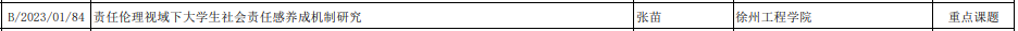 近日,江苏省教育科学研究院发布了《2023年度省教育科学规划课题立项名单的通知》,我院张苗老师的“责任伦理视域下大学生社会责任感养成机制研究”获批重点课题立项、徐琪老师的“‘四链融创’产教融合机制创新研究”获批高校青年专项立项。这是我院今年继赵耿昊老师获批江苏省社科基金立项之后的又一成果。