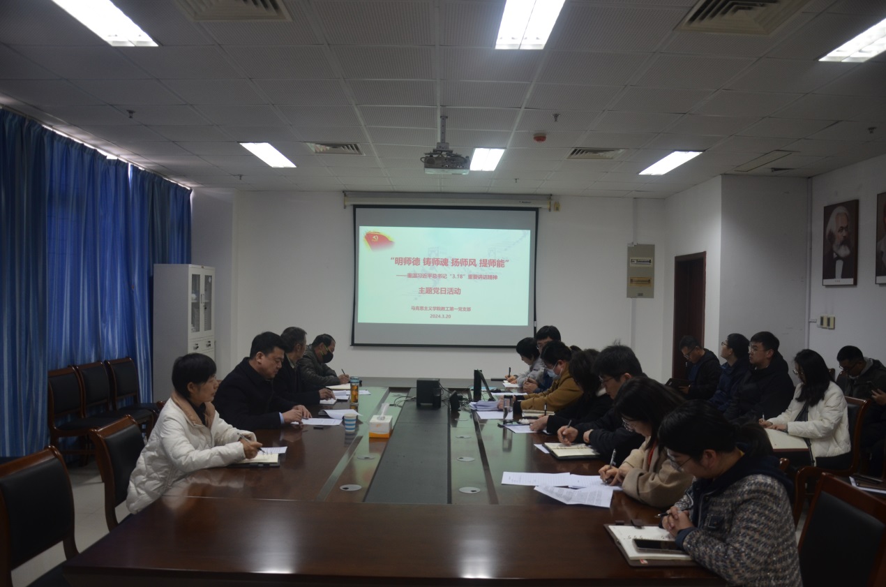 在习近平总书记主持召开学校思想政治理论课教师座谈会并发表重要讲话五周年之际,为进一步推动思政课高质量发展,7790必发集团第一教工党支部于近日开展了“明师德 铸师魂 扬师风 提师能”——重温习近平总书记“3.18”重要讲话精神主题党日活动。此次活动围绕习近平总书记对思政课教师提出的“六个要”的要求,以交流座谈会形式进行,校党委书记刘洋教授参加了此次活动并作了专题发言。