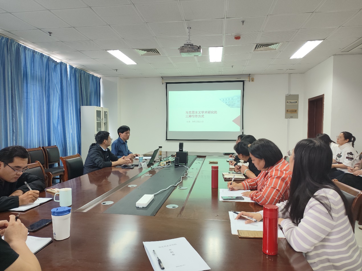孙亮教授以马克思主义学术写作的三种方式为题,从选题、论证、成稿等方面,详细阐述了马克思主义学者在研究过程中所需掌握的理论文章、学术论文、资政报告的写作方式。